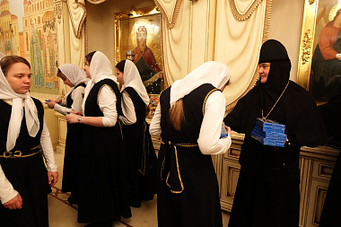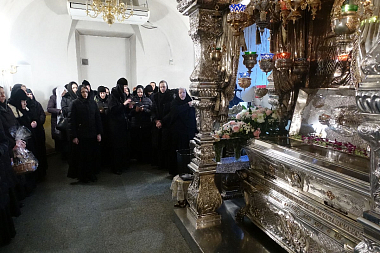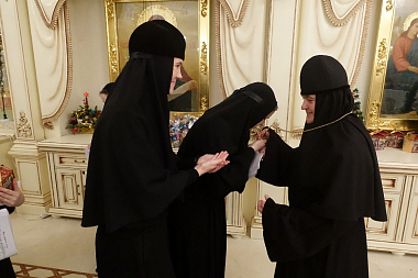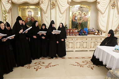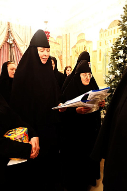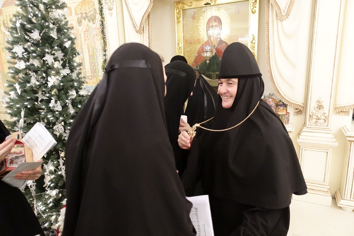 Насельницы обители поздравили настоятельницу монастыря игумению Феофанию (Мискину) с наступившим праздником Рождества Христова.