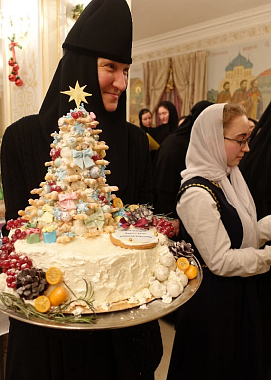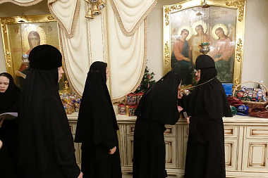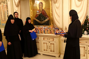 В завершение матушка игумения вручила воспитанницам монастырского приюта и сестрам обители рождественские подарки.