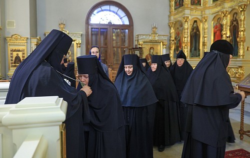 По окончании Литургии монастырское духовенство вместе с богомольцами прошли крестным ходом в храм Иерусалимской иконы Божией Матери, где совершили молебное пение пред Иерусалимской иконой Божией Матери.