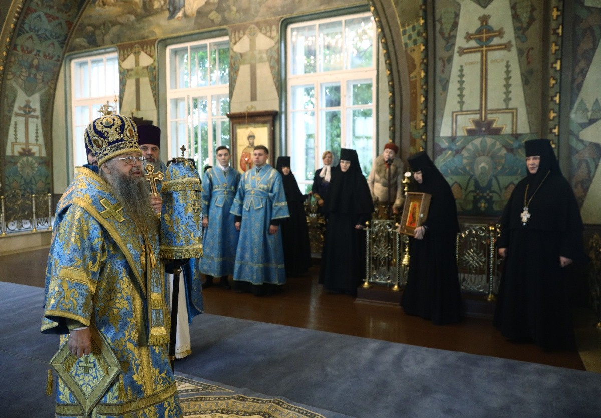 По окончании Литургии епископ Алексий передал игумении Викторине с сестрами, прихожанам и паломникам поздравление Святейшего Патриарха Московского и всея Руси Кирилла с престольным праздником обители и Первосвятительское благословение, после чего обратился к молящимся с архипастырским словом.
