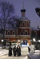 Богослужебные песнопения исполнил хор сестер Зачатьевского монастыря.