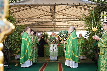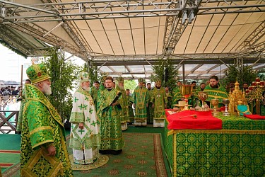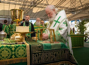 Для совершения праздничной Божественной литургии на Соборной площади был устроен помост, а перед Успенским собором Лавры — престол под сенью.