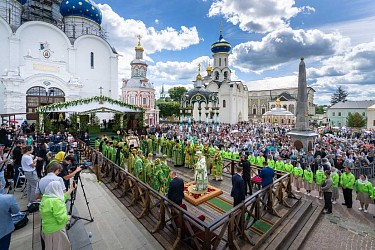 23 июня 2024 года, в праздник Святой Троицы (Пятидесятницы), престольный праздник Свято-Троицкой Сергиевой лавры, Святейший Патриарх Московский и всея Руси Кирилл совершил Божественную литургию на Соборной площади обители преподобного Сергия Радонежского.