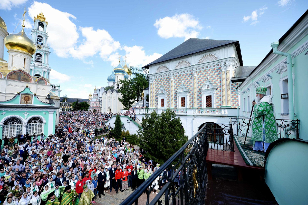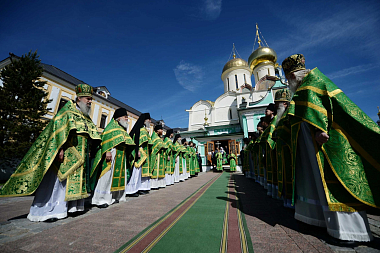 Праздничные богослужения совершались во всех храмах Свято-Троицкой Сергиевой лавры. По завершении богослужений иерархи, духовенство, прихожане и многочисленные паломники собрались на Соборной площади Лавры.