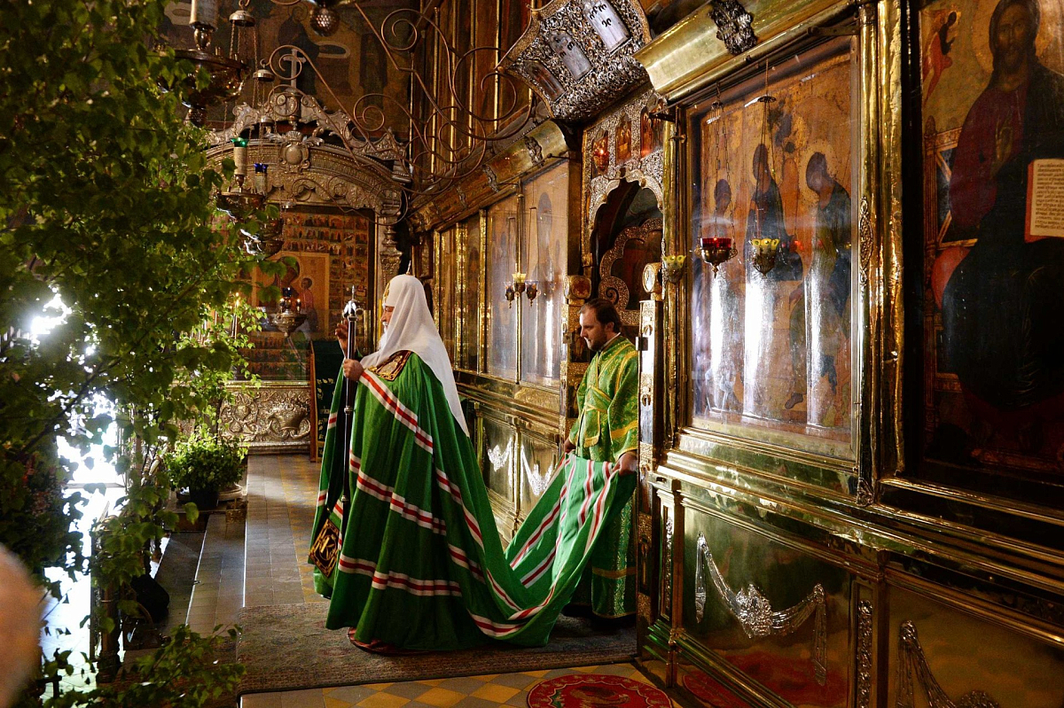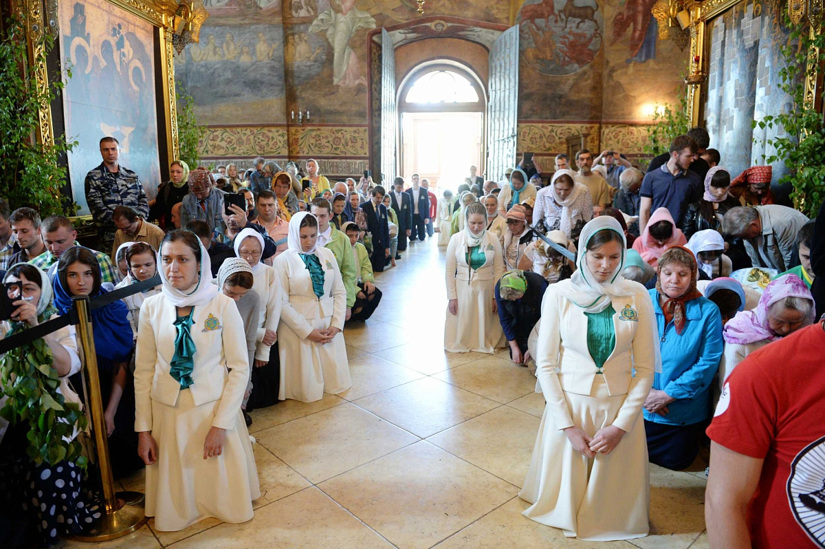 По окончании Литургии Святейший Владыка совершил великую вечерню праздника Пятидесятницы с чтением коленопреклонных молитв.