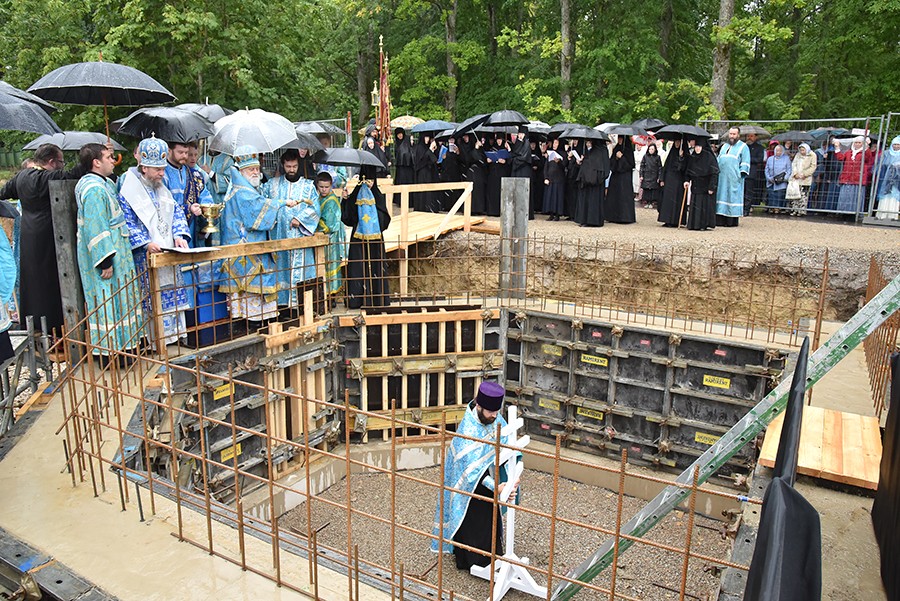 Молебное пение на закладке возглавили архиепископ Верейский Евгений и епископ Нарвский и Причудский Лазарь в сослужении монастырского священника игумена Самуила (Караска), а также настоятелей Раквереской Рождества Богородицы церкви протоиерея Александра Лебедева и Йыхвиской Богоявленской церкви протоиерея Андрея Суслова.