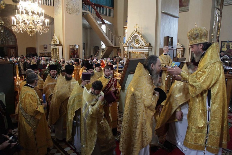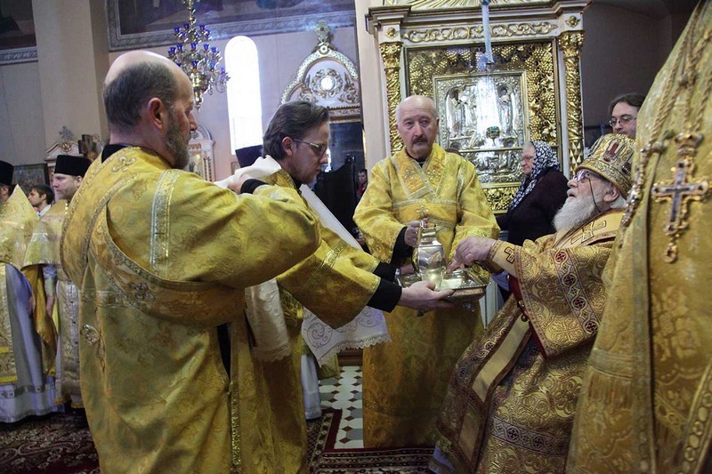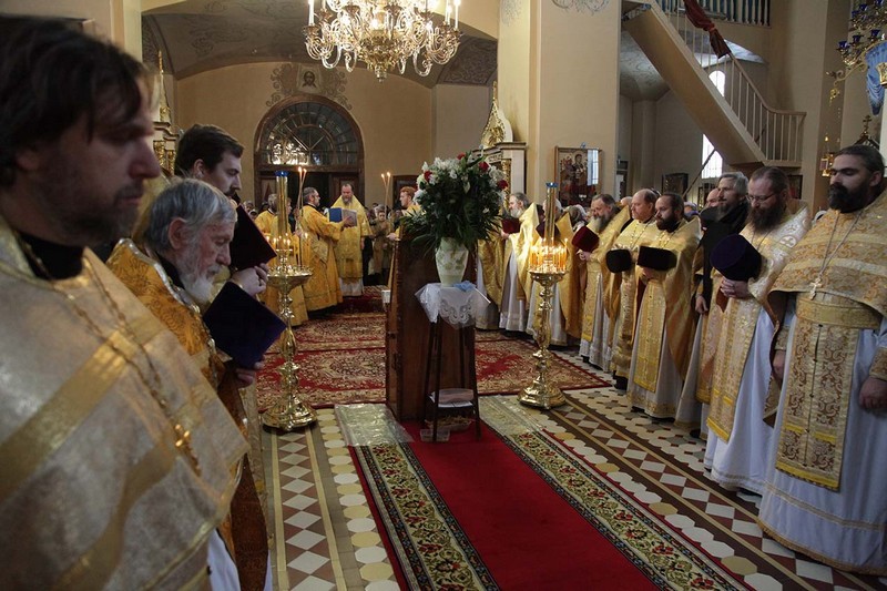 Его Высокопреосвященству сослужили епископ Нарвский и Причудский Лазарь, наместник Свято-Успенского Псково-Печерского монастыря архимандрит Тихон (Секретарев), духовенство Эстонской Православной Церкви Московского Патриархата и клирики Пюхтицкого монастыря.
