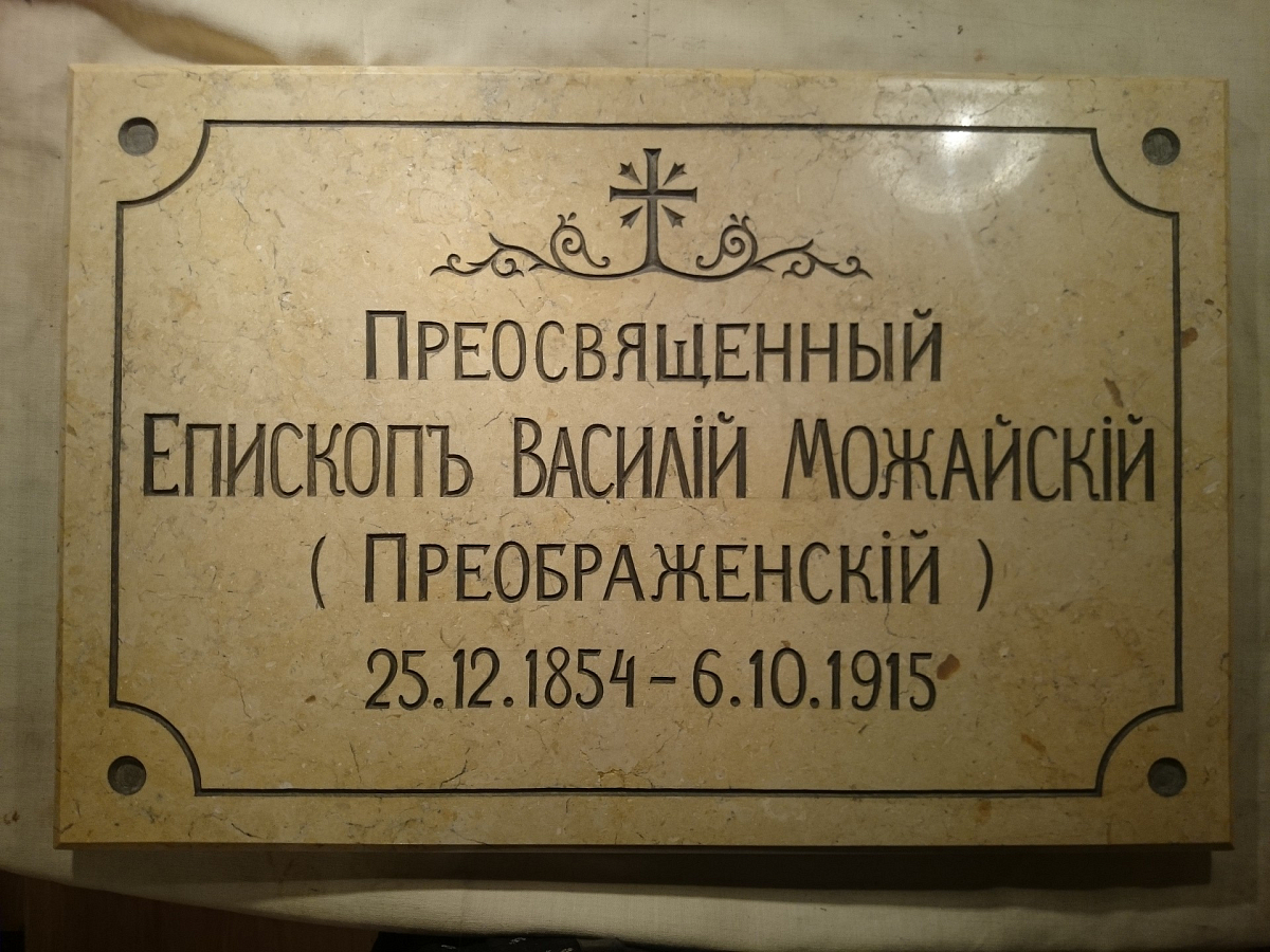 Инициатором восстановления надгробия на могиле епископа Василия стал протоиерей Андрей Папков – прямой потомок приснопоминаемого владыки. В самом конце прошлого года он обратился к председателю Синодального отдела по монастырям и монашеству, наместнику Троице-Сергиевой лавры архиепископу Сергиево-Посадскому Феогносту с просьбой восстановить плиту на захоронении своего родственника епископа Можайского Василия. Владыка благословил своего помощника С.А. Анохину курировать ход работ.