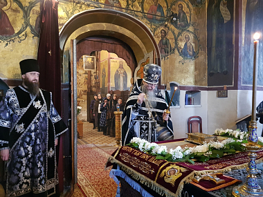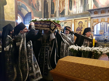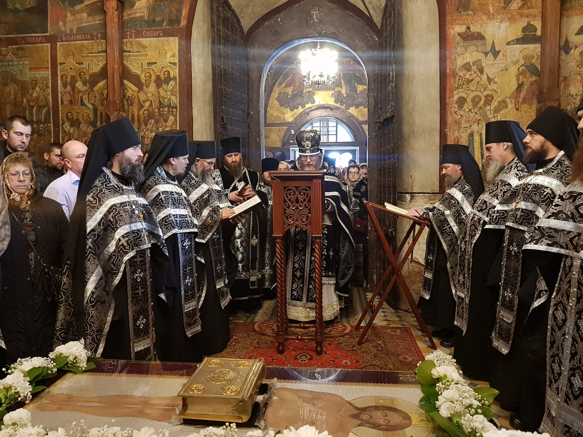 Утром в соборе Рождества Божией Матери наместник монастыря архимандрит Савва (Фатеев) в сослужении братии обители в священном сане совершил чтение Царских Часов.