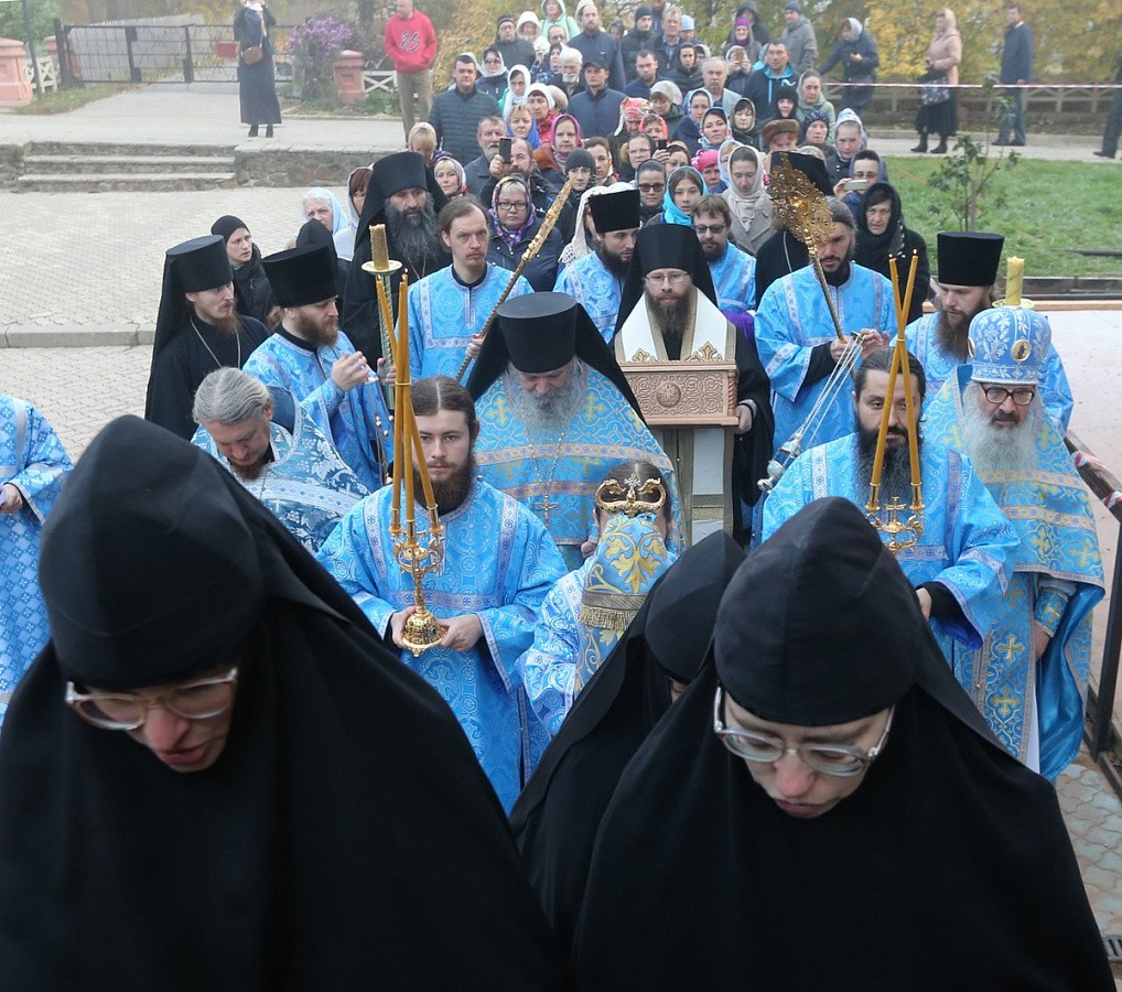 «Для нашего монастыря это сугубый праздник: в 1884 году, когда основывалась наша обитель, первый храм был освящен именно на праздник Покрова. В то время Преосвященный Владимир Калужский сказал, что он желает, чтобы Покров Пресвятой Богородицы пребывал над этой обителью, и это было очень символично.