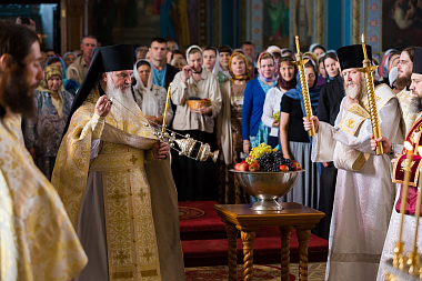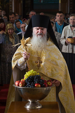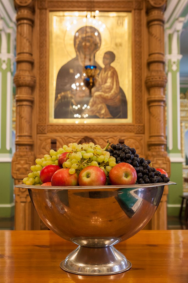 По окончании торжественной Литургии насельник обители игумен Мефодий освятил плоды нового урожая: виноград, яблоки, груши, сливы.