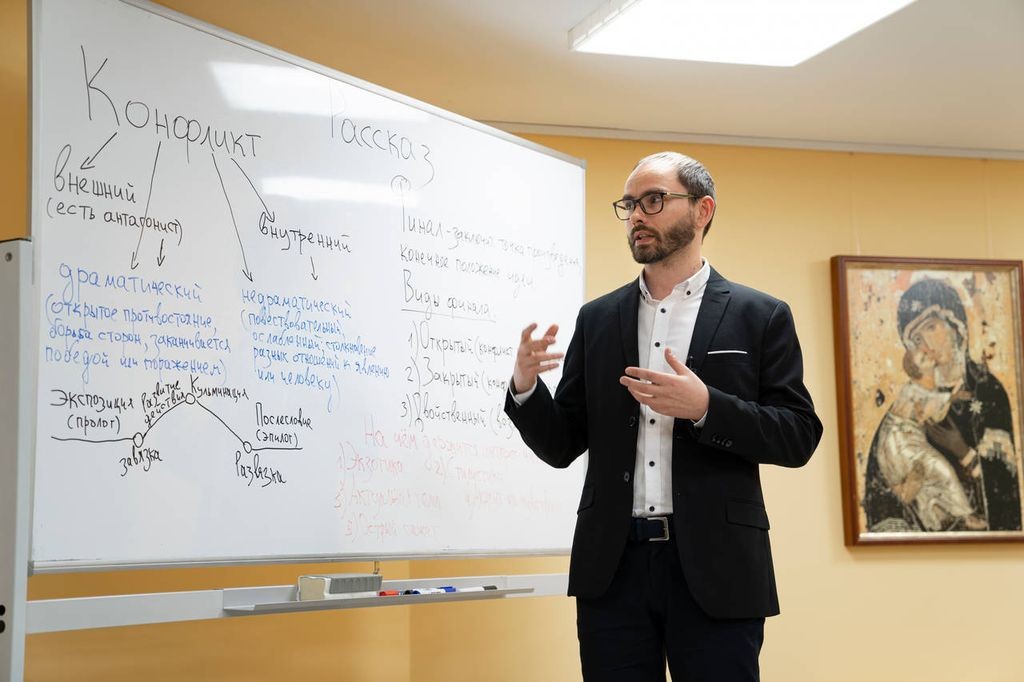 27 февраля 2020 года в Желтой аудитории Просветительского центра Сретенского ставропигиального мужского монастыря прошла последняя встреча из курса «Как научиться говорить и писать о своей вере». Православный публицист и катехизатор Сергей Комаров разобрал технологии написания интересного рассказа, а также рассмотрел возможные варианты проповеди по житию святых.