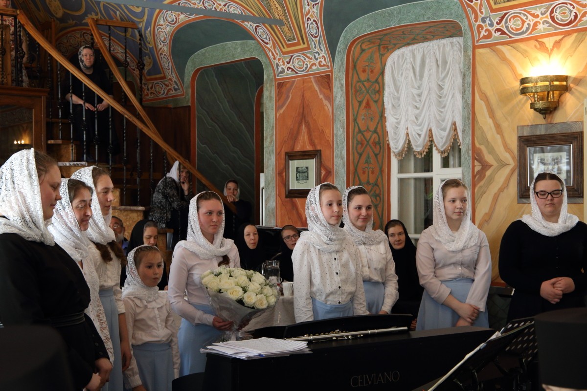 Торжества завершила праздничная трапеза, за которой прозвучало множество поздравлений в адрес игумении Елисаветы от гостей, прихожан и насельниц обители. Сестры монастыря, паломники и детско-юношеский хор при Успенском храме г. Сергиева Посада подготовили для именинницы и гостей музыкальное поздравление.