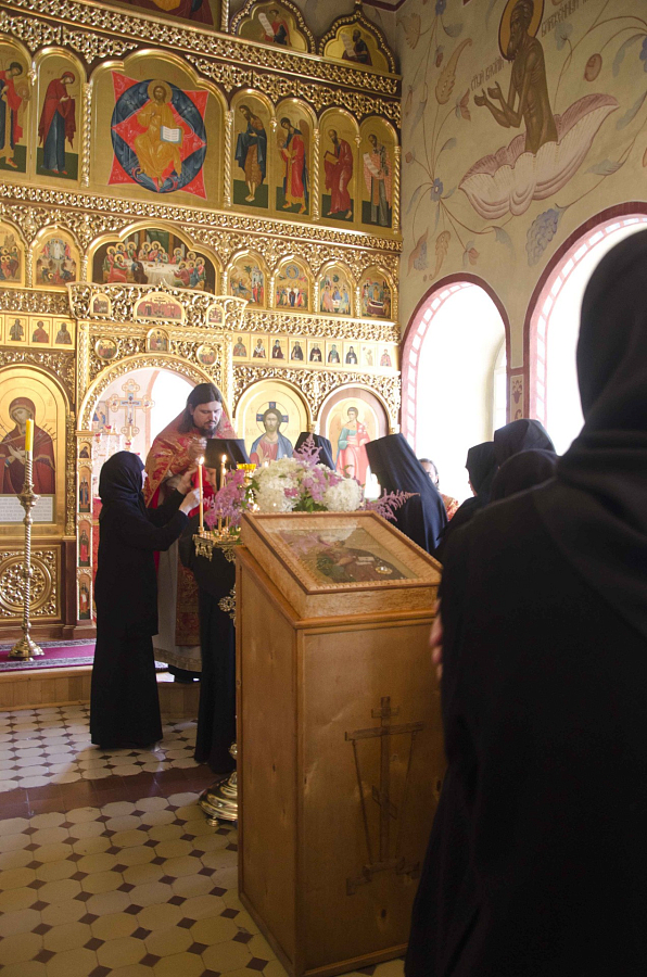 В завершение богослужения клирик монастыря иерей Димитрий Штых произнес поучительное слово о том, что ныне, когда медицина может многое, люди подчас не задумываются о духовных причинах своих болезней, требуя «механического» излечения без искоренения первопричины болезни, которая часто дается Богом для нашего вразумления, для того, чтобы мы осознали какую-либо нашу страсть или покаялись в тяжком грехе.