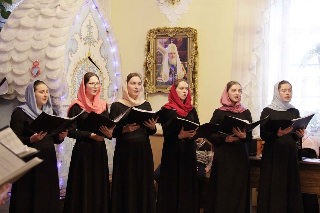 В завершение колядок сводным хором были исполнены тропарь и кондак праздника, а также «С нами Бог» Зиновьева.