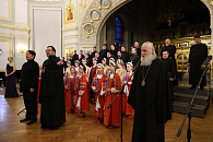 Накануне митрополит Дионисий в сослужении Преосвященных епископов Фомы и Феодорита совершил акафист и всенощное бдение в Успенском соборе обители.