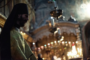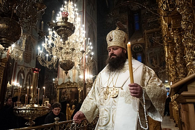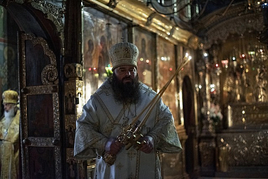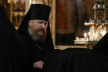 Накануне наместник лавры епископ Сергиево-Посадский Парамон совершил всенощное бдение в Успенском соборе обители.