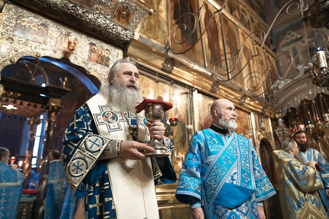Среднюю Божественную литургию в Троицком соборе монастыря возглавил председатель Синодального отдела по монастырям и монашеству архиепископ Каширский Феогност.
