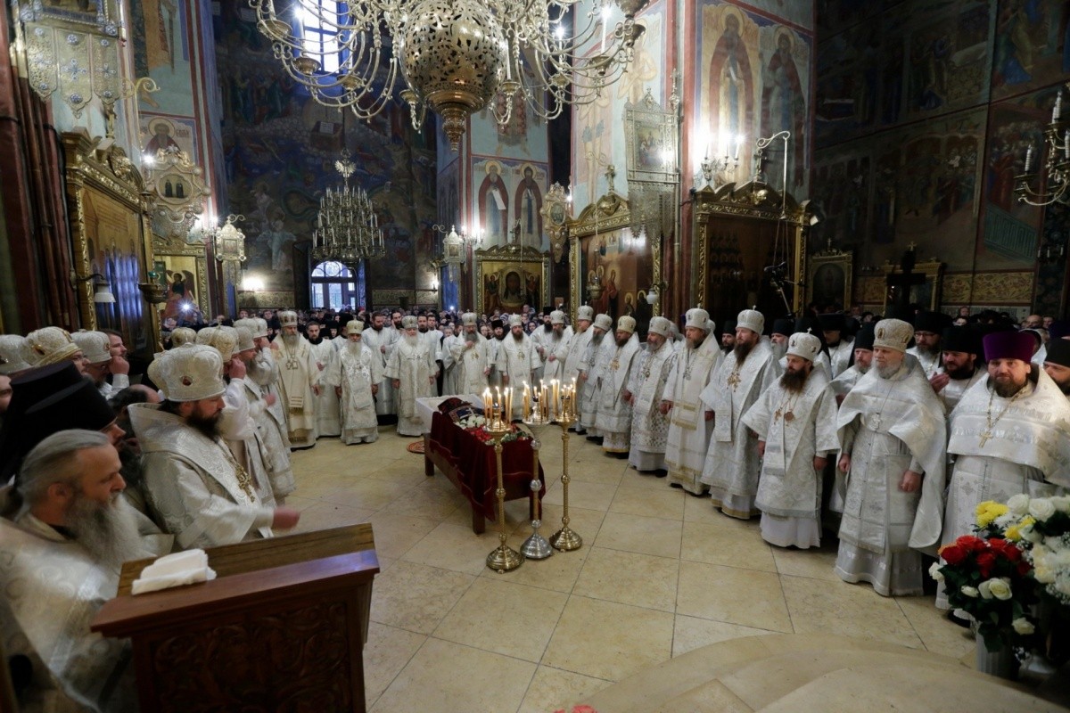 По окончании Божественной литургии заупокойное богослужение в Успенском соборе обители возглавил митрополит Истринский Арсений, викарий Святейшего Патриарха.
