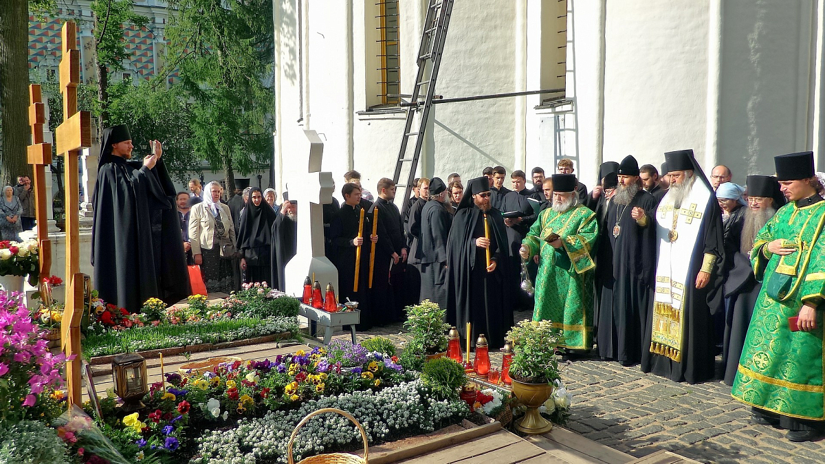 В течение всего дня возле места упокоения днесь тезоименитого отца Кирилла будут совершаться панихиды и заупокойные литии священством различных епархий Русской Православной Церкви, прибывшим в лавру молитвенно почтить память всенародного старца.