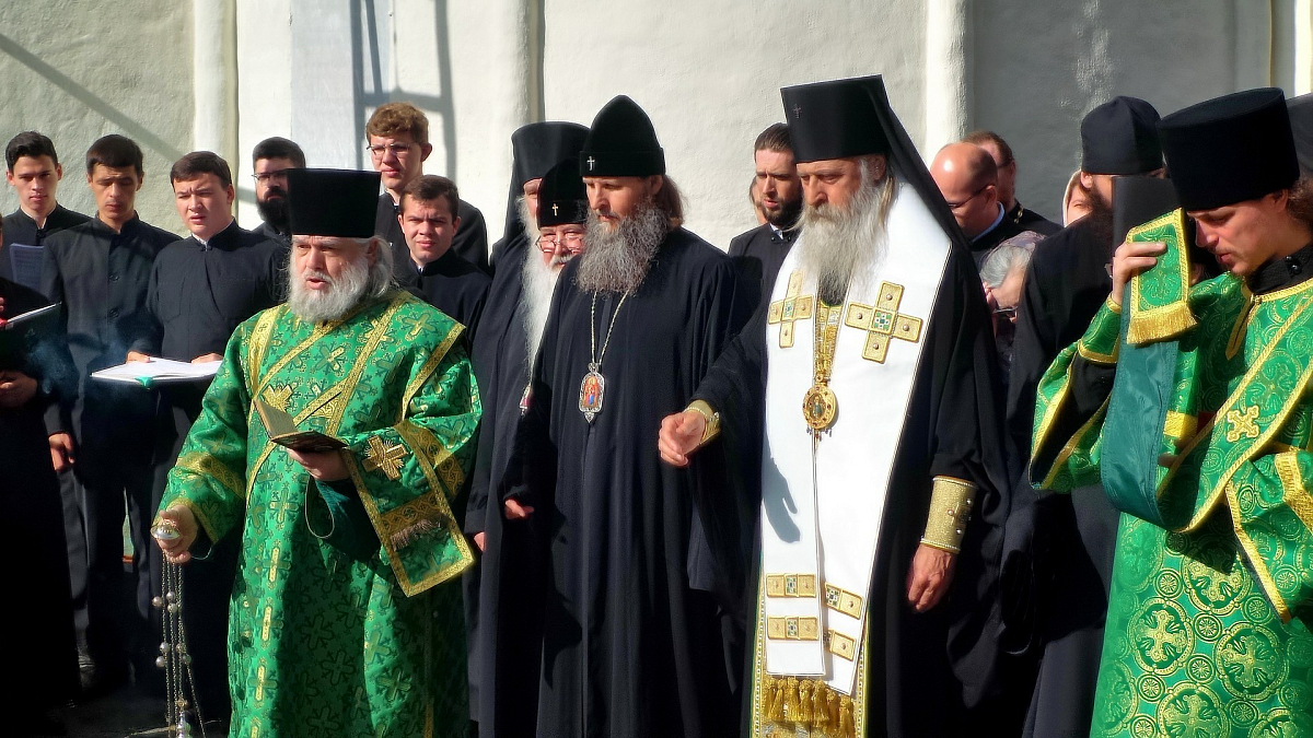 Его Высокопреосвященству сослужили митрополит Архангельский и Холмогорский Даниил, архиепископ Южно-Сахалинский и Курильский Тихон, наместник Данилова ставропигиального мужского монастыря Москвы архимандрит Алексий (Поликарпов), благочинный лавры архимандрит Павел (Кривоногов) и монастырская братия в священном сане.