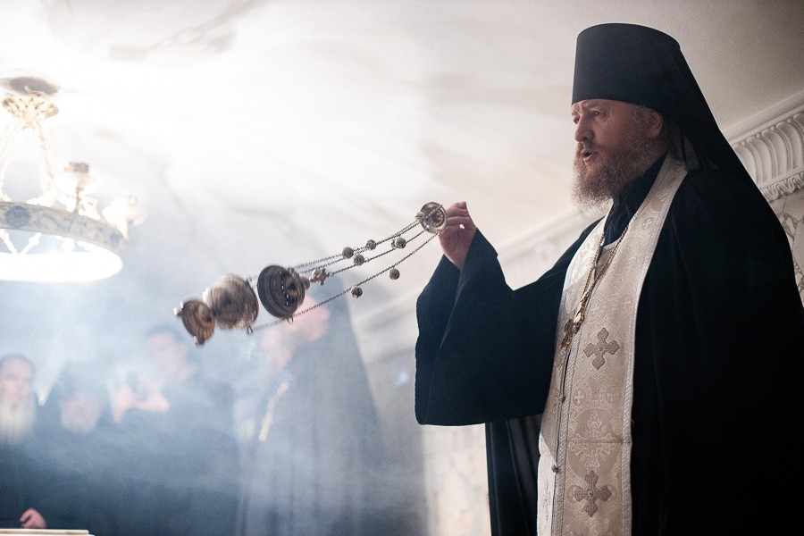 Богослужебные песнопения исполнил хор братии лавры под управлением игумена Силуана (Баранова).
