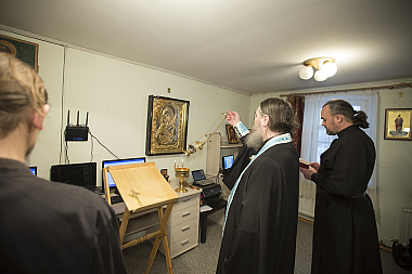 «Братия, начинающие сегодня подвизаться в информотделе Валаама, не останавливайтесь и трудитесь во славу Божию. Я пришел сегодня к вам, чтобы поддержать вас на этом трудном и тернистом пути», – подчеркнул отец Максимилиан.