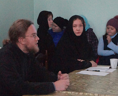 Желающие посещать занятия помолились и испросили Божие благословение на предстоящий 2016–2017 учебный год. Затем в здании детской Воскресной школы состоялась ознакомительная беседа с преподавателями школы по программе занятий.