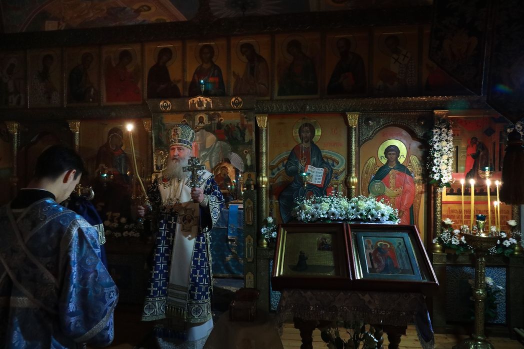По окончании Литургии митрополит Феогност поздравил всех с престольным праздником и обратился к собравшимся с архипастырским словом. В своем слове владыка указал на благоговение и благодарность, с которыми подобает приступать к непостижимым Тайнам Домостроительства Божия, верой постигая величие и вечность.