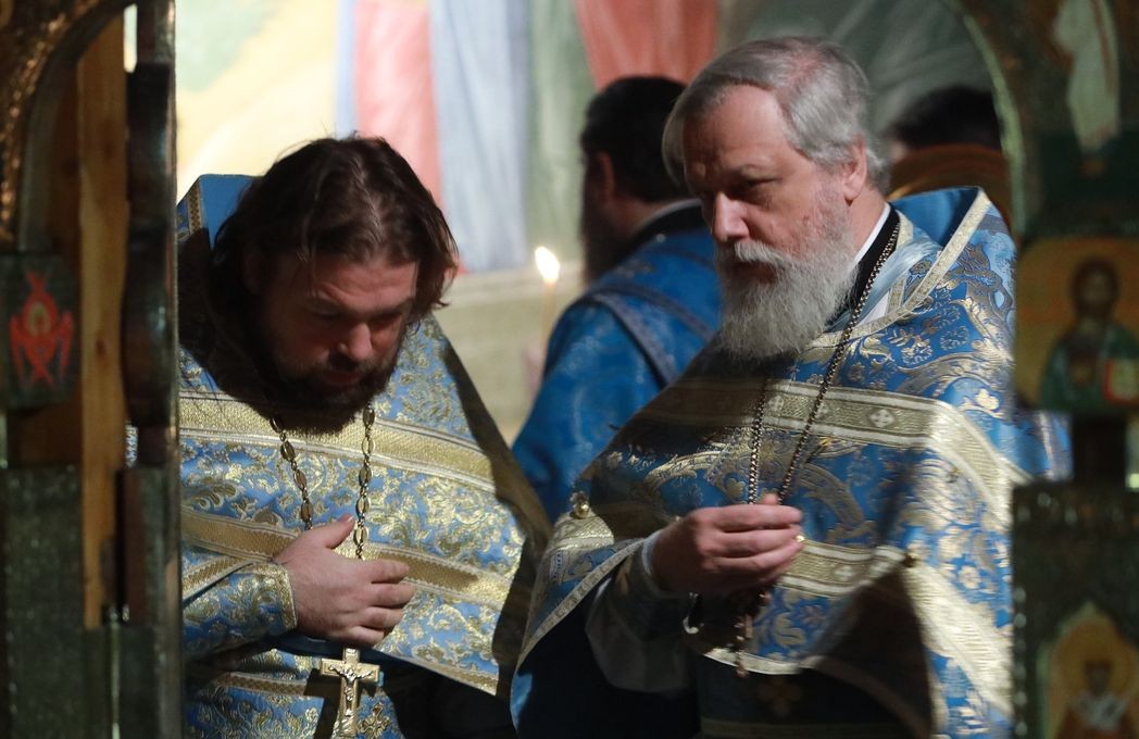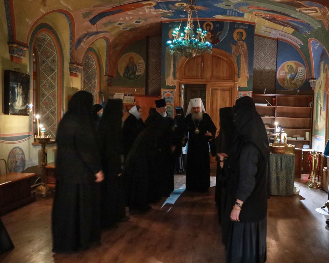 Его Высокопреосвященству сослужили клирики Зачатьевской обители.
