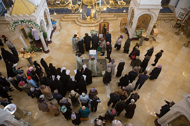 В монастырском соборе Рождества Пресвятой Богородицы перед святынями был отслужен молебен прп. Силуану, по окончании которого мощи были доступны для поклонения верующих.