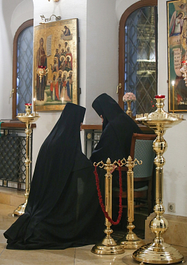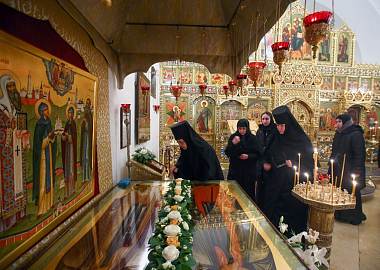 По окончании Литургии было совершено славление перед гробницей преподобных Иулиании и Евпраксии Московских.