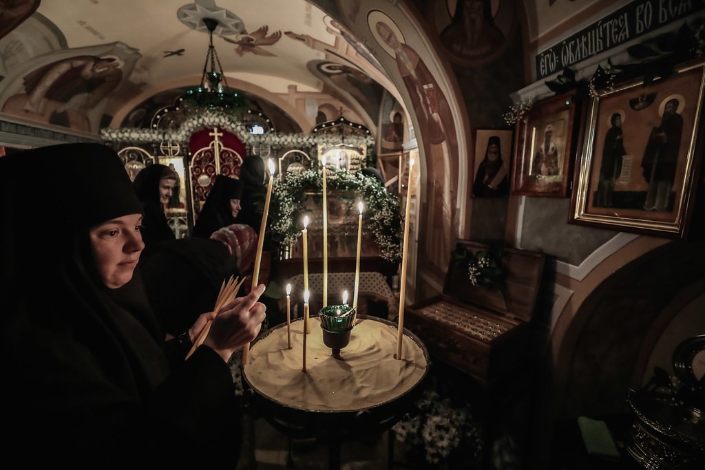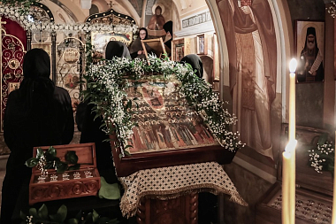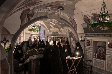 Накануне в храме, освященном в честь всех преподобных, было совершено всенощное бдение. В этот сугубо важный для обители праздник настоятельница монастыря игумения Иулиания (Каледа) читала праздничные стихиры, псалмы, тропари праздничного канона.