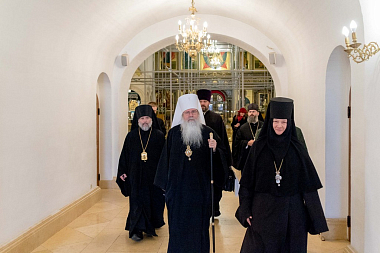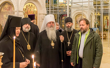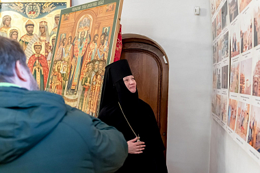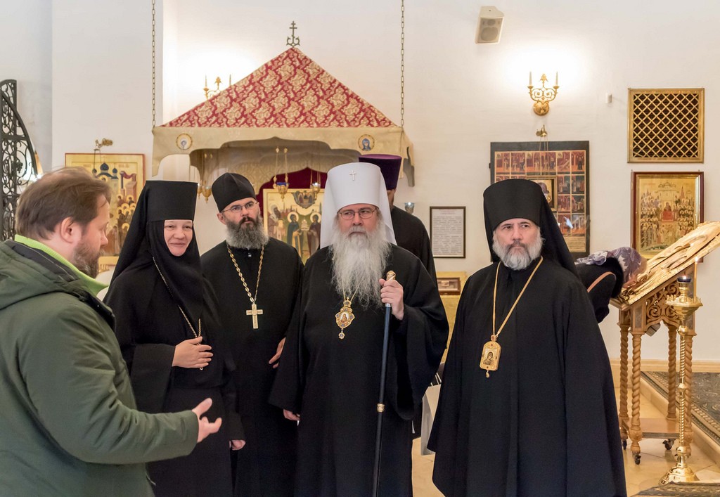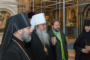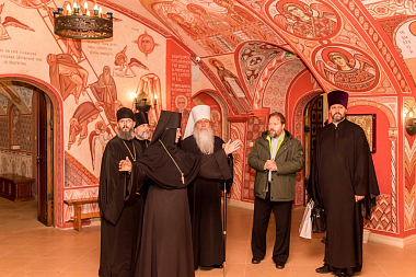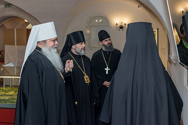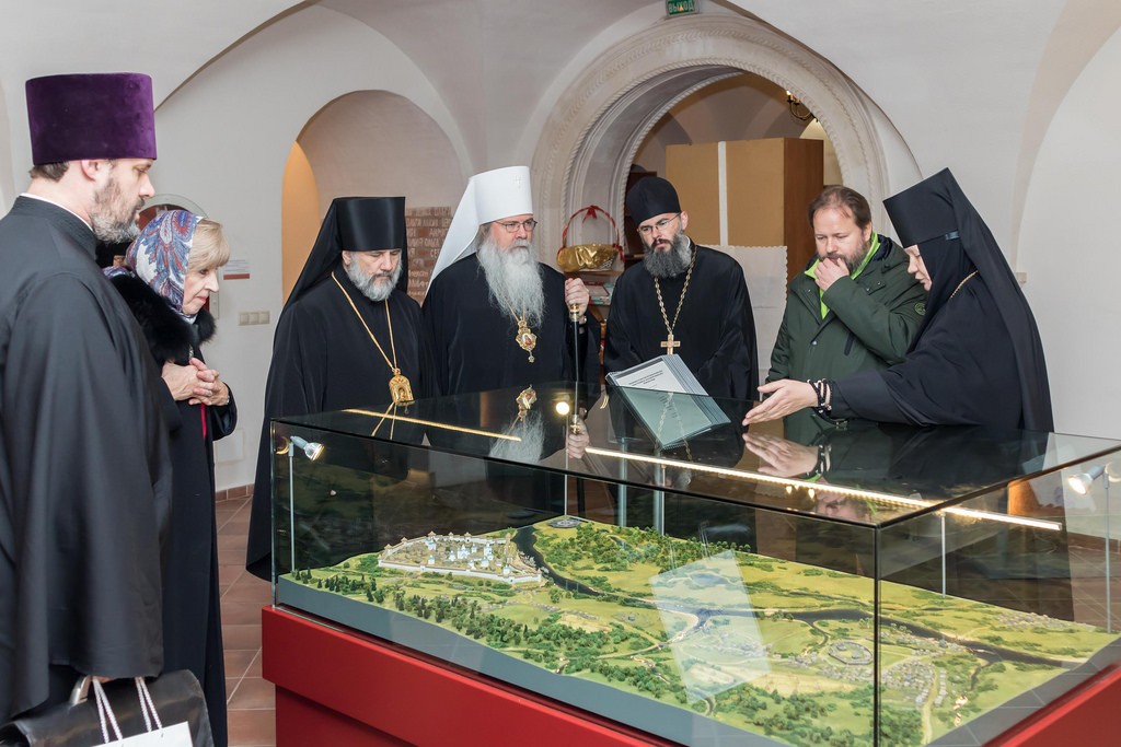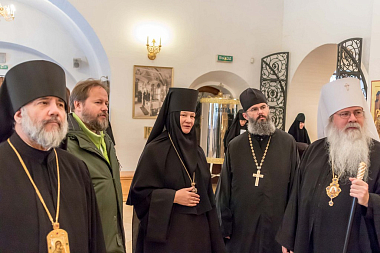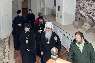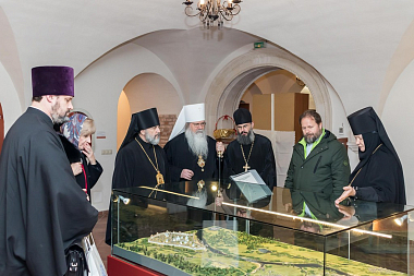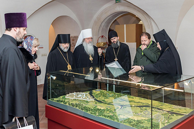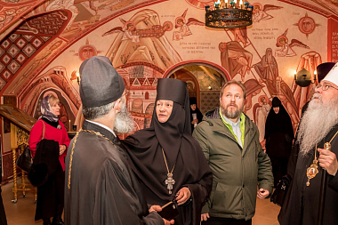По выходе из дома гости под праздничный колокольный звон направились в монастырь, и матушка игумения провела ознакомительную экскурсию по Богородице-Рождественскому собору монастыря с посещением музея истории в подземной части собора.