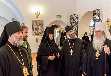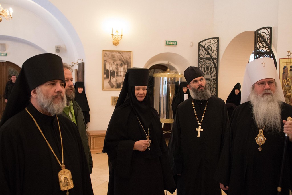 Первыми в монастырь прибыли гости из Америки. Матушка игумения с сестрами встретила Блаженнейшего митрополита Тихона у места воссоздаваемого храма Воскресения словущего на Остоженке, откуда делегация в сопровождении матушки и сестер прошла к дому на ул. Остоженке, 17–19 (бывшей частной клиники Бакуниных), где находился на лечении с 13 января 1925 года до своей кончины 7 апреля 1925 года святитель Тихон, Патриарх Московский и всея Руси, имя которого носит нынешний Предстоятель Православной Церкви в Америке.