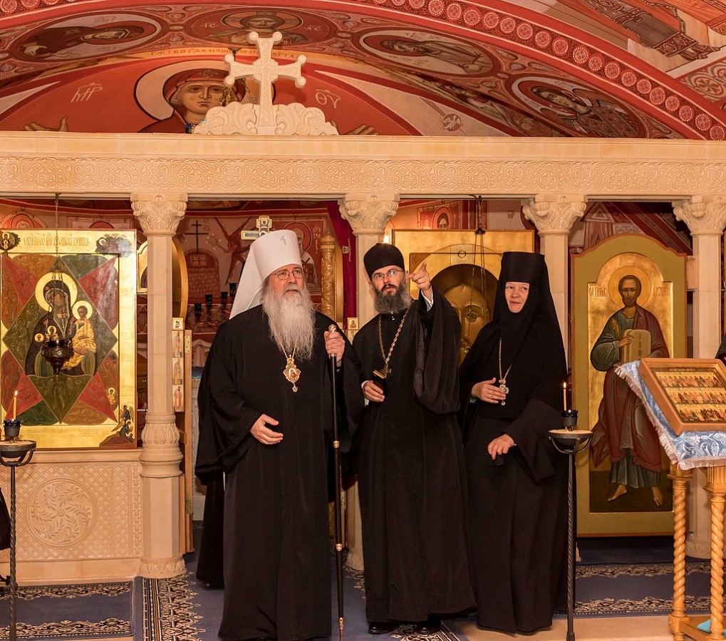 Затем гости из Америки посетили храм Сошествия Святого Духа, где игумения Иулиания ознакомила их с событиями и подвигами святых, связанных с историей храма, в том числе с житием священномученика Владимира Амбарцумова, во имя которого освящен новоустроенный южный придел храма.