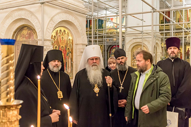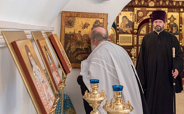 Блаженнейший приложился к чудотворной монастырской иконе Божией Матери «Милостивая» и к чтимому списку Киккской-Милостивой иконы Божией Матери – дара Киккского монастыря ко дню великого освящения собора 25 ноября 2010 года.