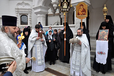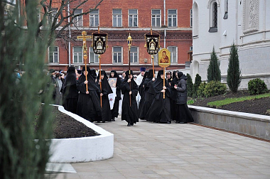 Настоятельница Зачатьевской обители выразила благодарность участникам богослужения за принесенные поздравления.