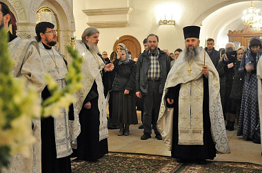 Множество паломников и прихожан собрались за торжественным богослужением в монастырском соборе, чтобы молитвенно почтить святого праведного Лазаря Четверодневного, поклониться частице его святых мощей, пребывающей в обители, и поздравить матушку игумению с днем рождения.
