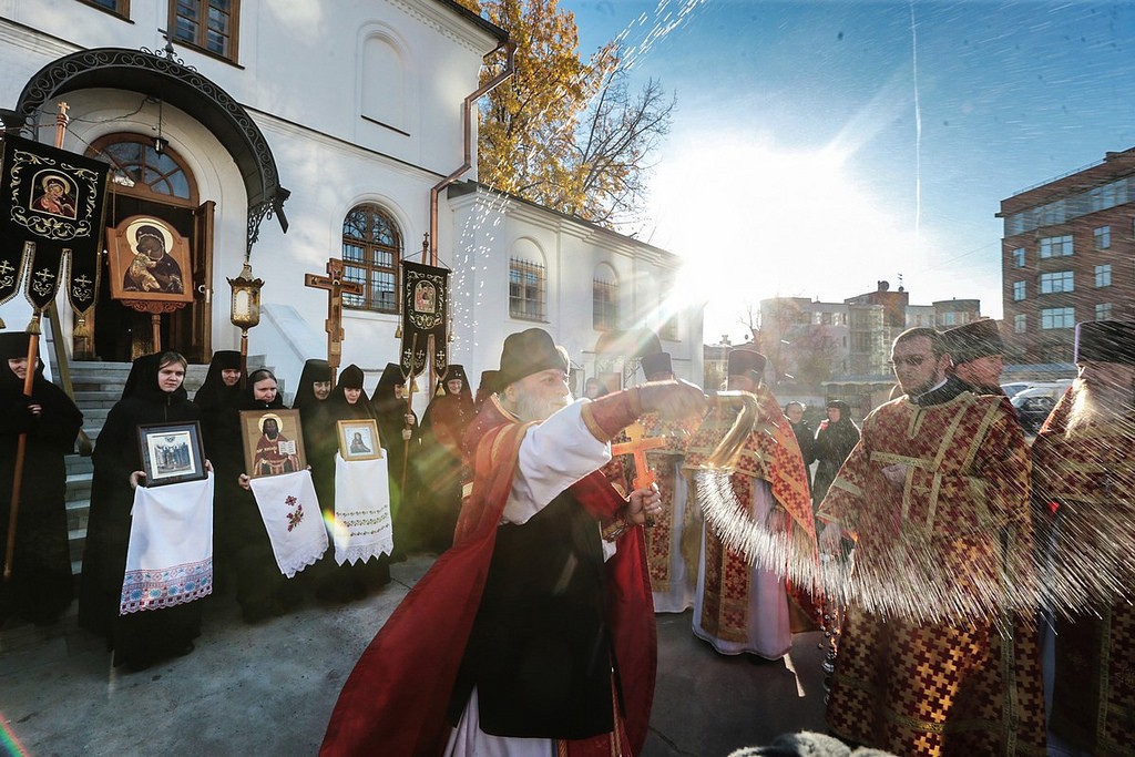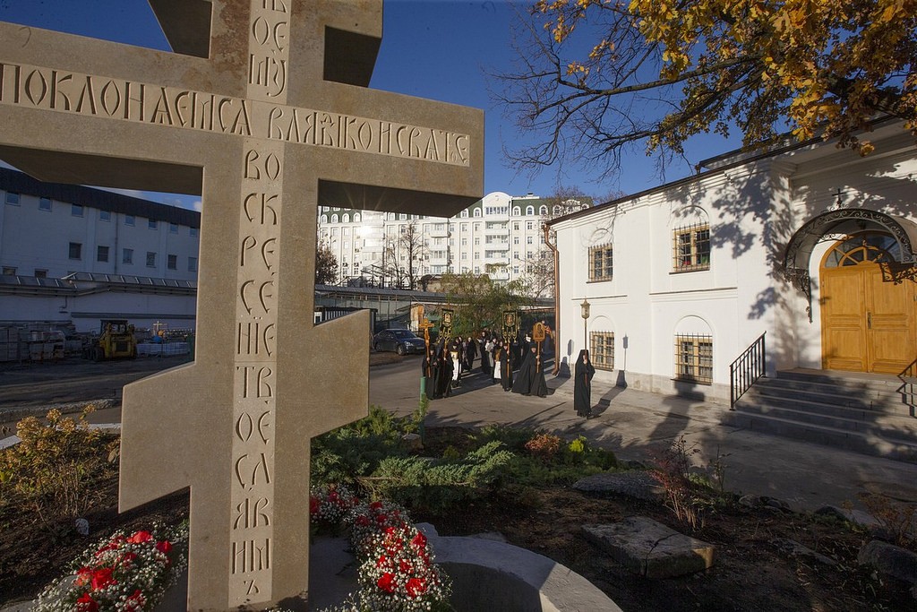 По окончании Литургии ее участники прошли крестным ходом, во время которого состоялось освящение новосооруженного поклонного креста, установленного напротив придела священномученика Владимира Московского в знак почитания подвига новомучеников и исповедников, в том числе священнослужителей и насельниц Зачатьевской обители, пострадавших в годы гонений.