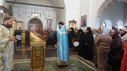 Много людей причастились Святых Христовых Таин, священники в проповедях рассказали собравшимся прихожанам и паломникам об истории праздника, прочли молитву перед иконой, помещенной на центральном аналое.