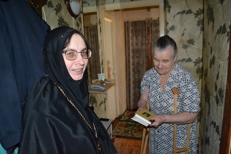 В течение месяца настоятельница Троице-Одигитриевского ставропигиального женского монастыря Зосимова пустынь игумения Фаина (Кулешова) встречалась с людьми и лично беседовала и вручала собранные средства и книги.