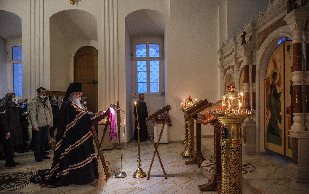 Вечером 16 марта 2021 года, во вторник первой седмицы Великого поста, наместник Андреевского ставропигиального мужского монастыря епископ Дмитровский Феофилакт совершил великое повечерие с чтением Великого покаянного канона преподобного Андрея Критского в Иоанно-Богословском храме Андреевского ставропигиального мужского монастыря Москвы.