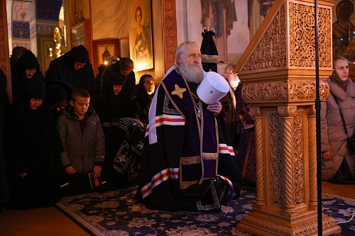 Вечером 4 марта 2025 года, во вторник первой седмицы Великого поста, председатель Синодального отдела по монастырям и монашеству, наместник Донского ставропигиального мужского монастыря митрополит Каширский Феогност совершил великое повечерие с чтением Великого покаянного канона преподобного Андрея Критского в Троицком соборе Борисоглебского Аносина ставропигиального женского монастыря.
