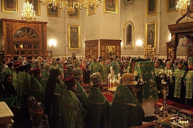 По окончании Литургии состоялся крестный ход вокруг Успенского собора Лавры.