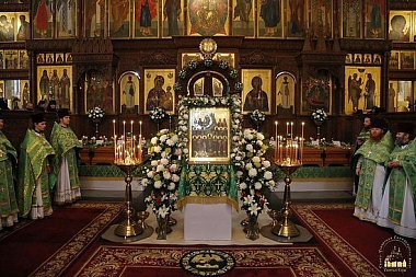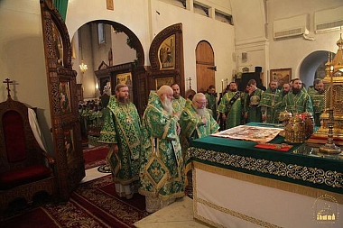 Божественную литургию возглавил священноархимандрит Свято-Успенской Святогорской лавры митрополит Донецкий и Мариупольский Иларион. Его Высокопреосвященству сослужили: наместник Свято-Успенской Святогорской лавры архиепископ Святогорский Арсений; архиепископ Горловский и Славянский Митрофан; архиепископ Макеевский Варнава; архиепископ Изюмский и Купянский Елисей; епископ Краснолиманский Алипий; епископ Иннокентий (Шестопаль); епископ Ровеньковский и Свердловский Пантелеимон; епископ Северодонецкий и Старобельский Никодим; братия Лавры в священном сане, духовенство Донецкой и Горловской епархий.
