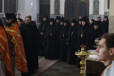 По окончании Божественной литургии епископ Порфирий обратился со словом ко всем настоятелям и настоятельницам Белорусского Экзархата. В нем Его Преосвященство заметил, что у каждого из нас есть какие-то немощи и несовершенства, и только любовью, а не резким словом, можно подвигнуть человека к духовной жизни, подвигу. В подтверждение Владыка привел пример кротости и любви приснопамятного архимандрита Софрония (Сахарова), который не один год провел на Святой Горе, а позже основал обитель в Англии. Теплое, доброе слово отца Софрония давало силы насельникам дальше жить, дальше служить, дальше приносить плоды монашеской жизни.