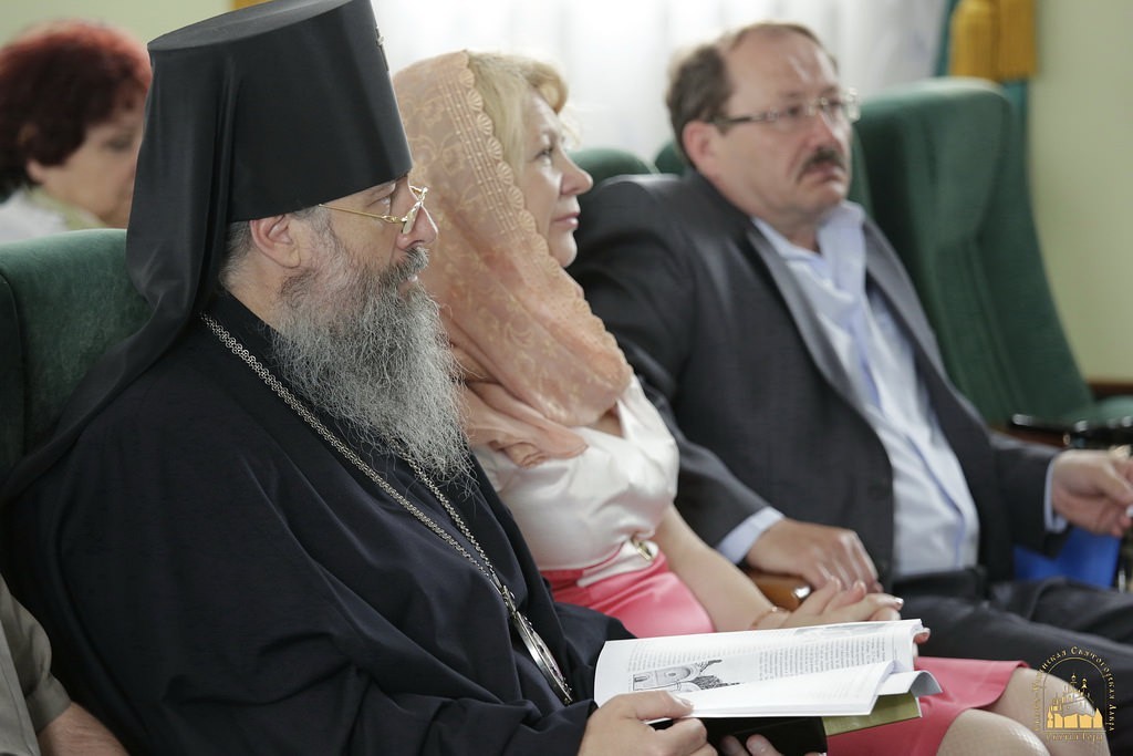К участникам конференции с приветственным словом обратился наместник Свято-Успенской Святогорской лавры архиепископ Святогорский Арсений (Яковенко). В своем выступлении Высокопреосвященнейший владыка высоко оценил результаты 35-летней деятельности заповедника и других научных и реставрационных учреждений Украины по сохранению исторической застройки Святогорского Успенского монастыря XVII–XIX веков и обратил внимание на общность усилий Церкви и государства по сохранению культурного национального достояния в последнее время.
