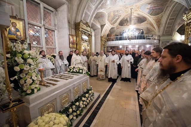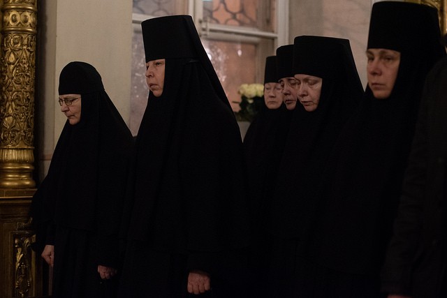 За богослужением среди прочих молились настоятельницы ряда ставропигиальных женских монастырей, в частности Богородице-Рождественского – член Коллегии СОММ игумения Викторина (Перминова), Борисоглебского Аносина – игумения Мария (Солодовникова), Алексеевского – руководитель Юридической службы Московской Патриархии игумения Ксения (Чернега).
