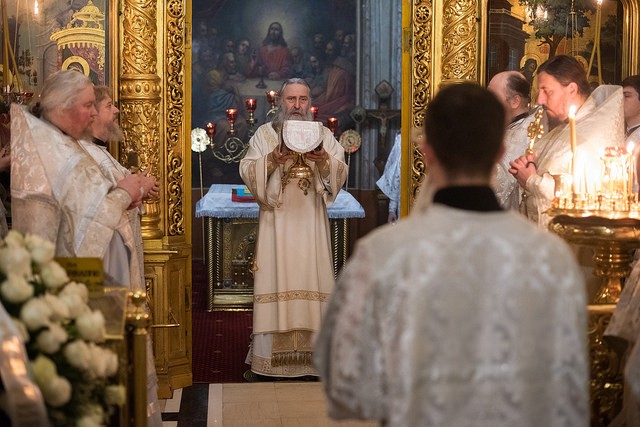 Проповедь по запричастном стихе произнес игумен Филипп (Ельшин).